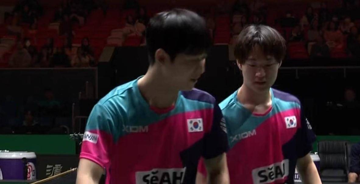 第四盘男双成为全场最大意外,韩国小将组合吴晙诚/朴康贤对阵瑞典世界冠军组合法尔克/卡尔森。