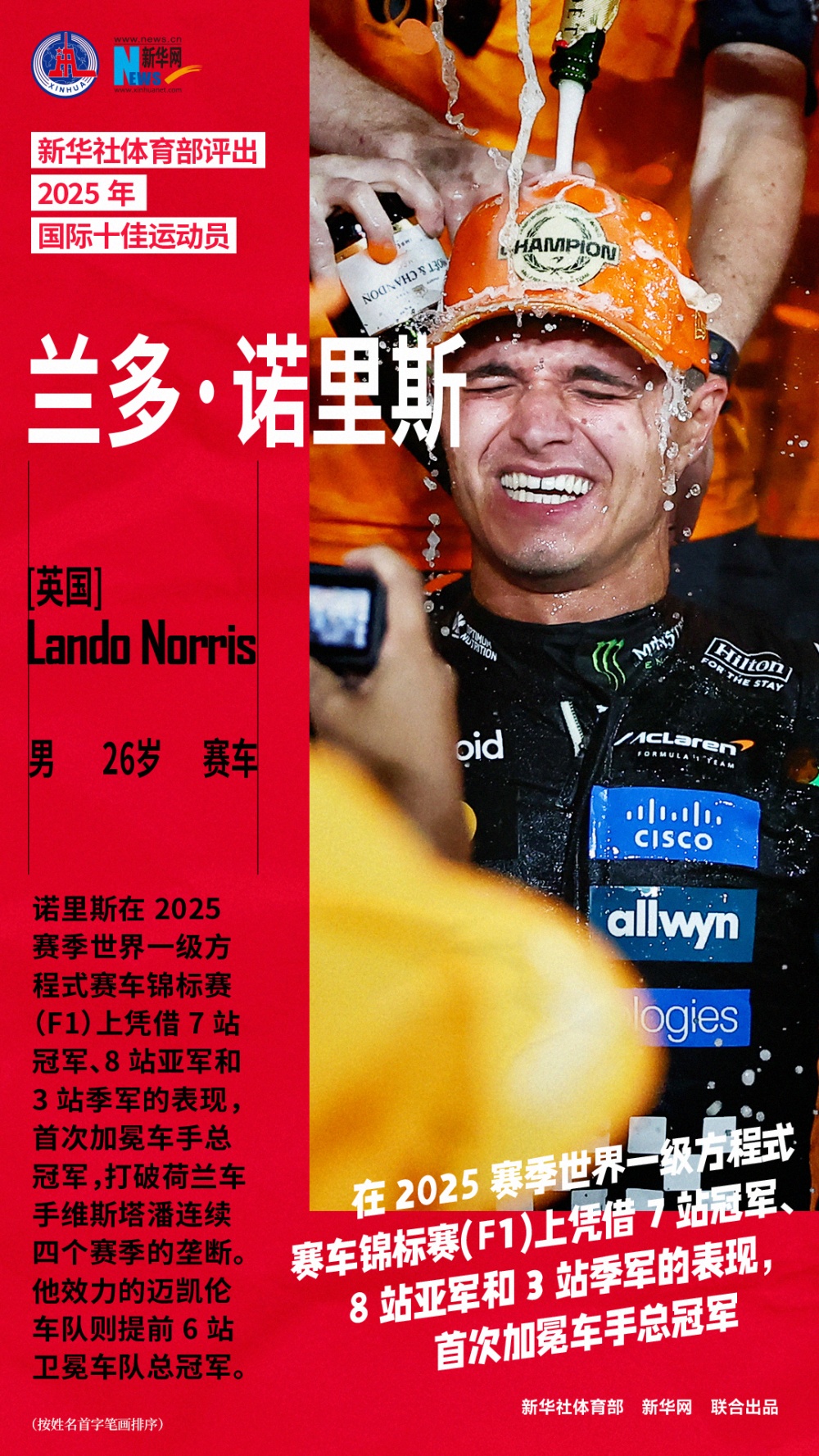 波胆足球,波胆推荐,英超波胆预测,波胆比分,波胆实单诺里斯在2025赛季世界一级方程式赛车锦标赛(F1)上凭借7站冠军、8站亚军和3站季军的表现,首次加冕车手总冠军,打破荷兰车手维斯塔潘连续四个赛季的垄断。他效力的迈凯伦车队则提前6站卫冕车队总冠军。