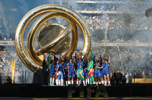 当地时间7月13日,2025年国际足联俱乐部世界杯决赛在美国纽约大都会体育场进行。英格兰切尔西队以3比0击败法国巴黎圣日耳曼队,夺得世俱杯改制后的首个冠军。