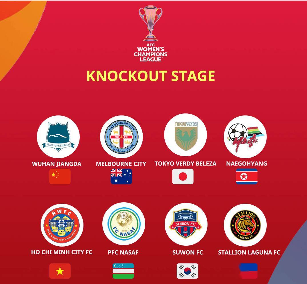 今年1月15日,亚足联将在吉隆坡总部对女足亚冠联赛淘汰赛进行抽签,以确定1/4决赛以及决赛阶段比赛的对阵形势。按亚足联竞赛规程,武汉江大女足因为在小组赛阶段以第二小组第一名的身份获得出线决赛中的种子队。其他三支种子队还包括第一小组第一名澳大利亚墨尔本城队、第三小组第一名日本的日视东京绿茵美人队以及成绩最好的小组第二名朝鲜我的家乡队。而其他闯入八强的队伍包括韩国、乌兹别克斯坦、越南以及菲律宾的四支队伍为非种子队。抽签时,四支种子队将分别迎战非种子队。在1/4决赛对阵形势确定后,亚足联还将进行半决赛对阵抽签。
