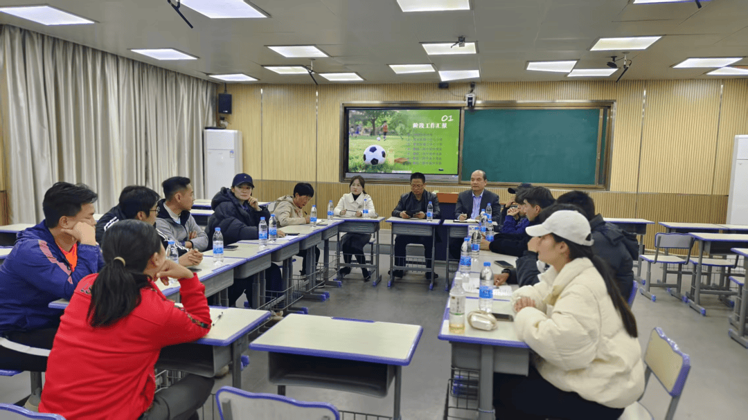 会议第三环节是领导致辞。阮喆副校长首先肯定了全体教练员的辛勤付出和各支球队在联赛中展现的精神风貌。鼓励大家再接再厉,争取更好成绩。兰金忠校长强调足球运动是学校“五育并举”的重要载体,他要求各队将会议精神落实到具体训练中,狠抓细节,补齐短板。